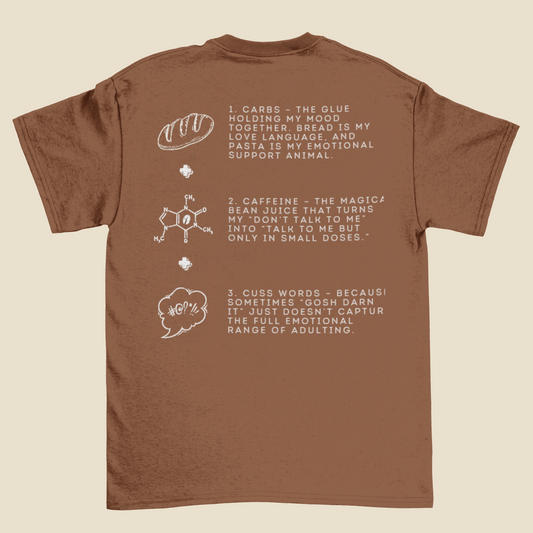 Carbs, Caffeine, and Cuss Words Tee