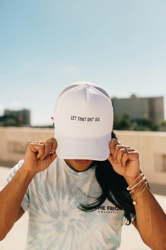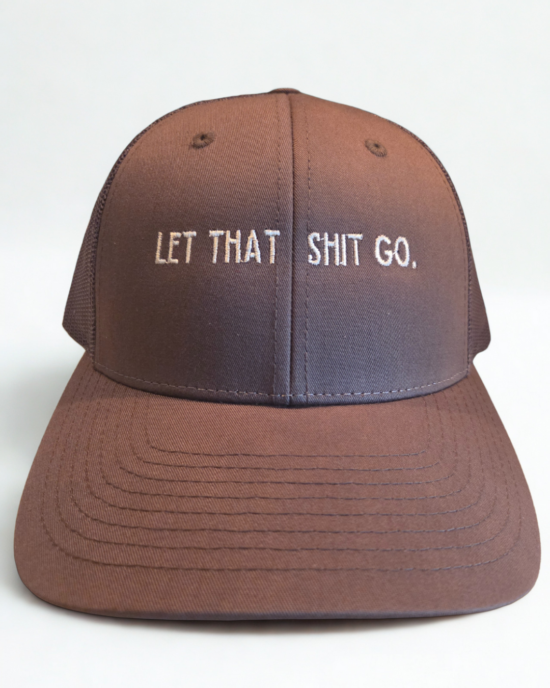 Let that sh*t go—literally. This embroidered hat is your new go-to reminder to release the drama, stress, and unsolicited opinions. Clean lines, comfy fit, and stitched with the kind of energy your therapist would approve of. Wear it on bad hair days, or good vibe days. Adjustable strap in the back, and just enough sass up front.