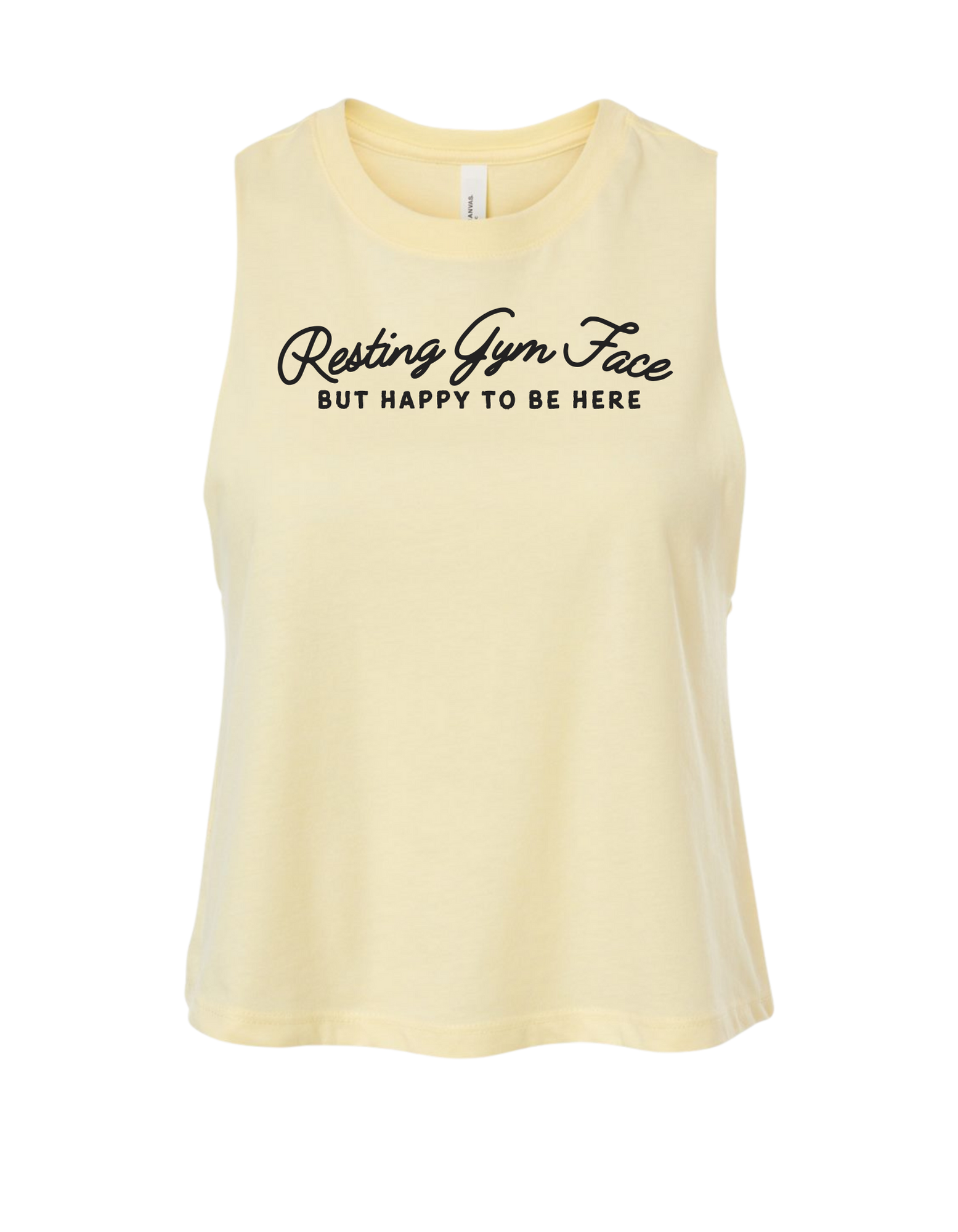 Introducing our Resting Gym Face cropped racerback tank: A cheeky nod to the whole 'I’m fine, it’s just my face' vibe—but make it gym. Perfect for women who want to lift heavy, stay focused, and maybe scare off the creepers (in the best way). You’re happy to be here, but your face doesn’t owe anyone an explanation. Rock it, own it, and crush your workout.